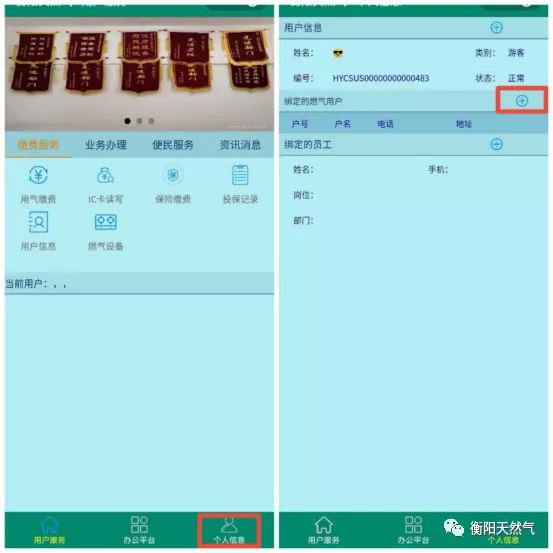 2、點(diǎn)擊右下角個(gè)人信息選項(xiàng),按+字符號(hào)綁定戶(hù)號(hào)、手機(jī)號(hào)、身份證號(hào)碼。(綁定內(nèi)容需與開(kāi)戶(hù)資料一致)。